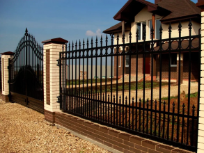 Сварные заборы с кирпичными столбами